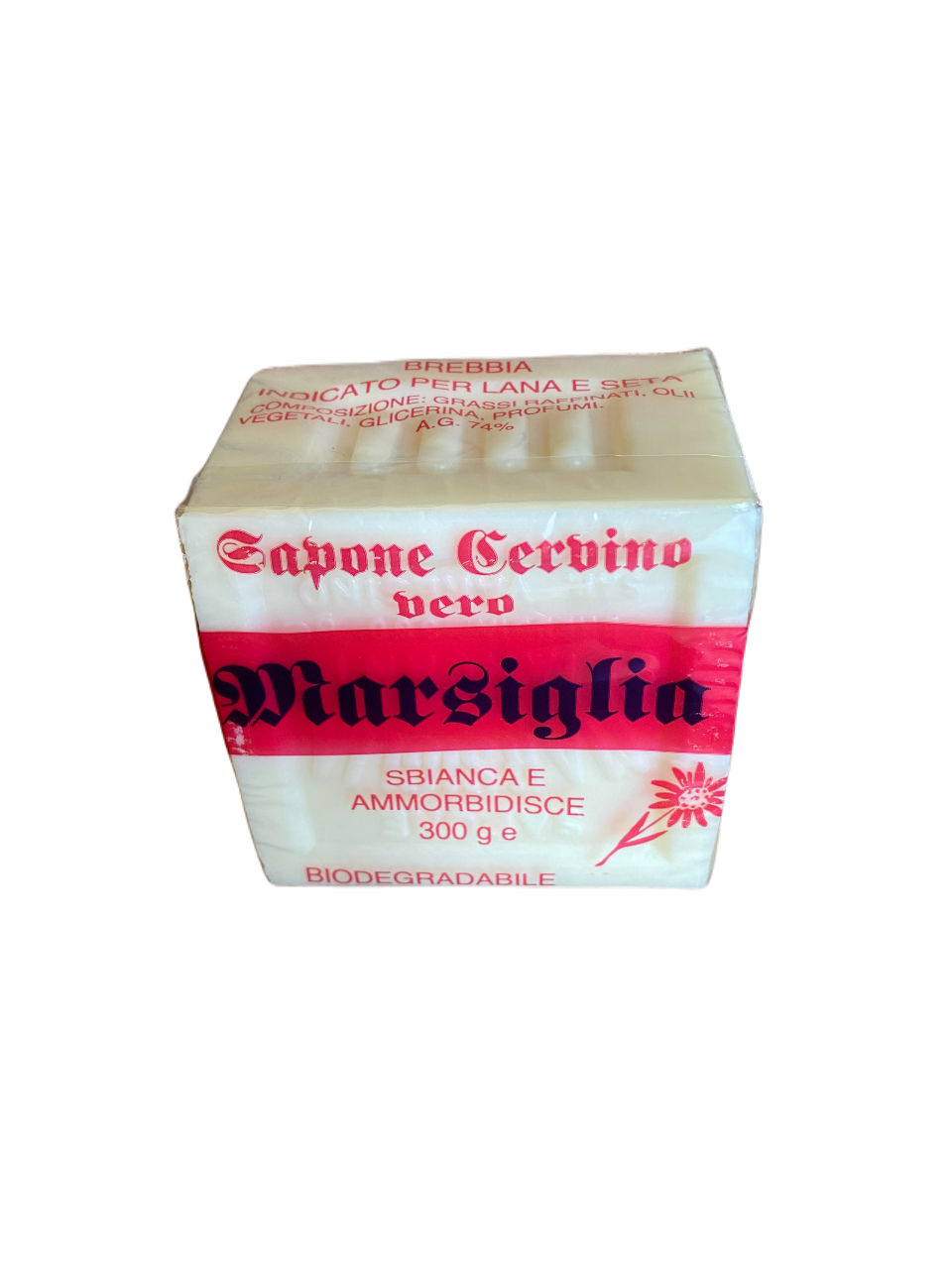 Naturalne i łagodne włoskie mydło do prania oraz kąpieli o cudownym zapachu szarotki alpejskiej (Stella Alpina kwiat, który rośnie w Alpach).